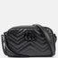 Efecto matelassé de color negro de Gucci con correa de cadena, detalles de logo y correa en color negro, detalle Doble G y forro de microfibra.