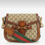 Cartera Gucci con solapa de piel, cierre de botón de presión con solapa, lona con minilogos de Gucci.