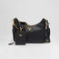 Cartera negra, cuero, logo de triángulo esmaltado acabado tono dorado, correa removible, asa superior de cadena dorada removible, cierre y placa de logo interior.