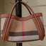 Amplia bolsa de lona diseño escocés y cuero genuino